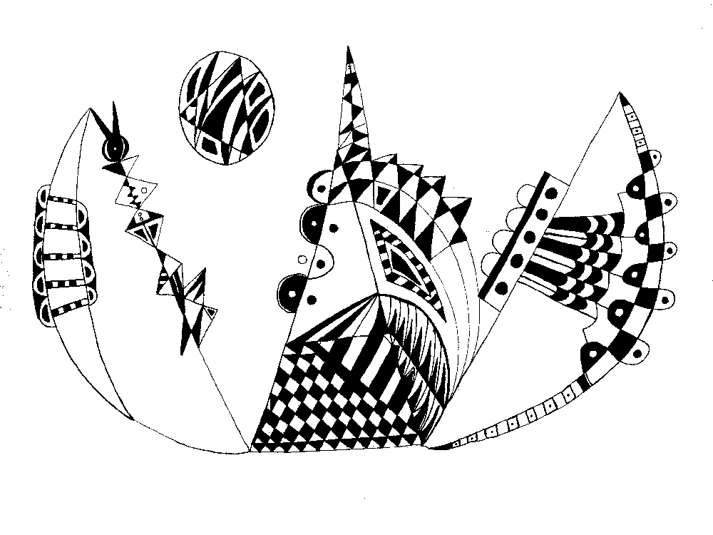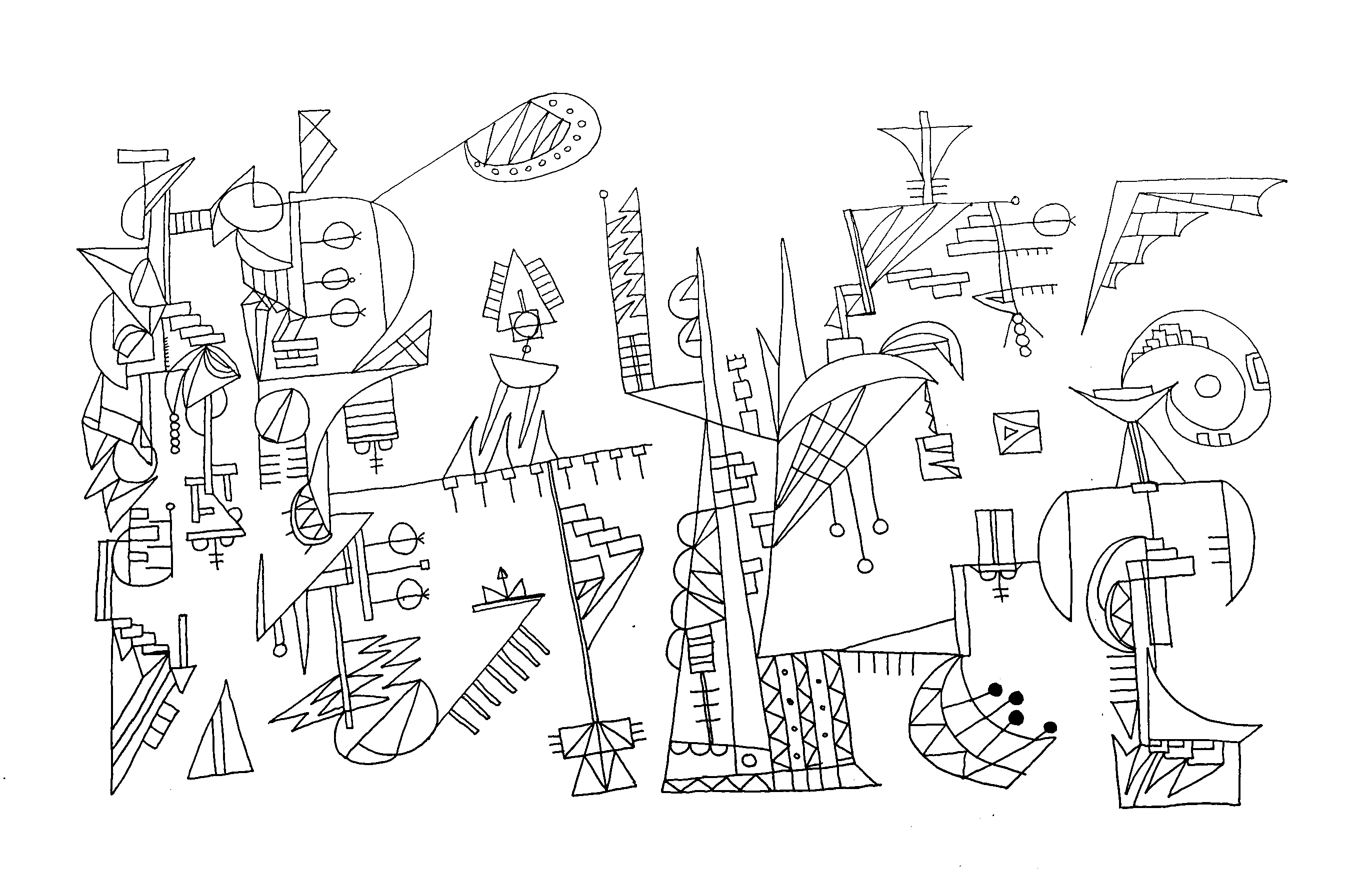 Géométrie non euclidienne, encre sur carton bois, 70 x 100